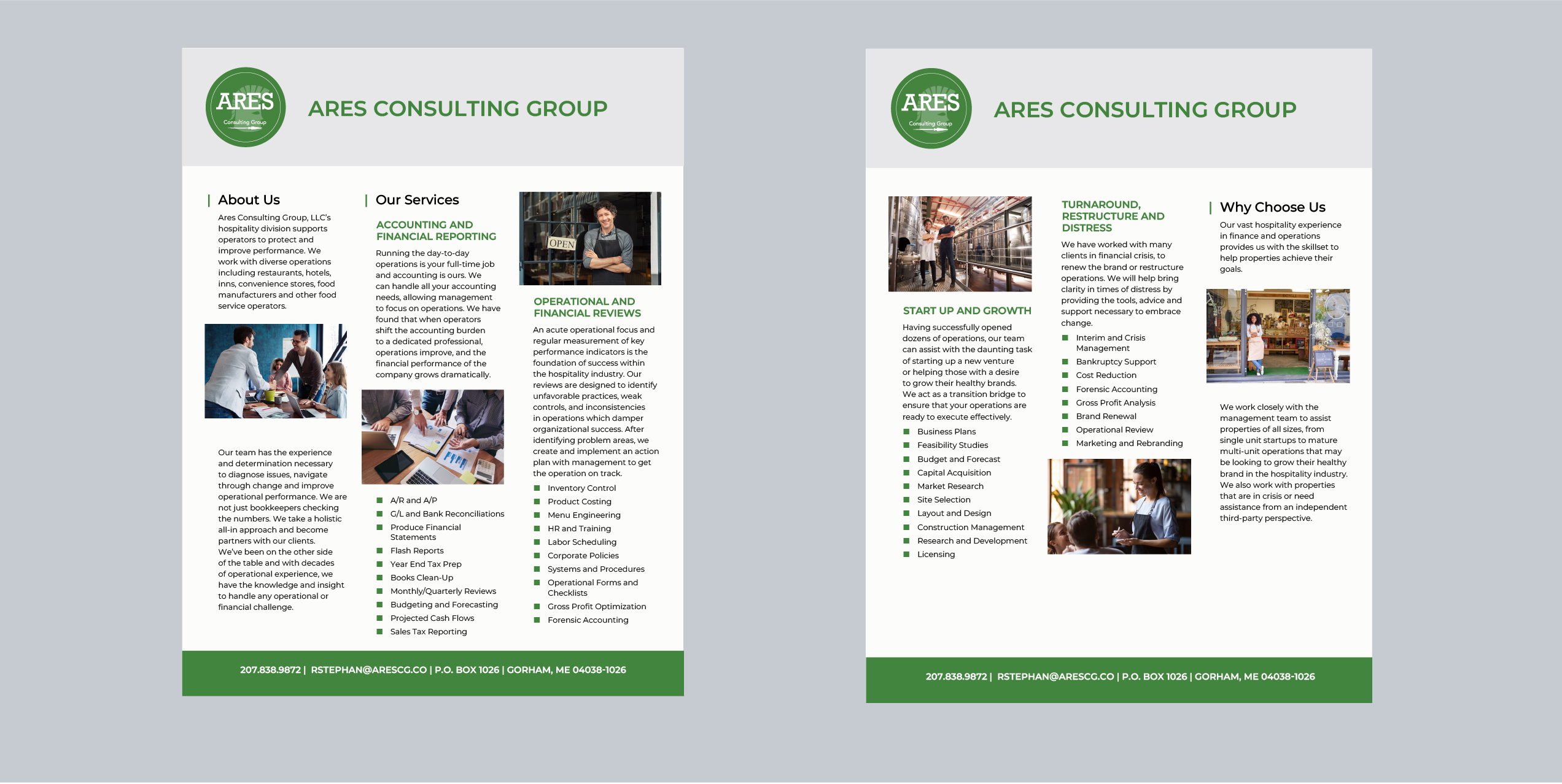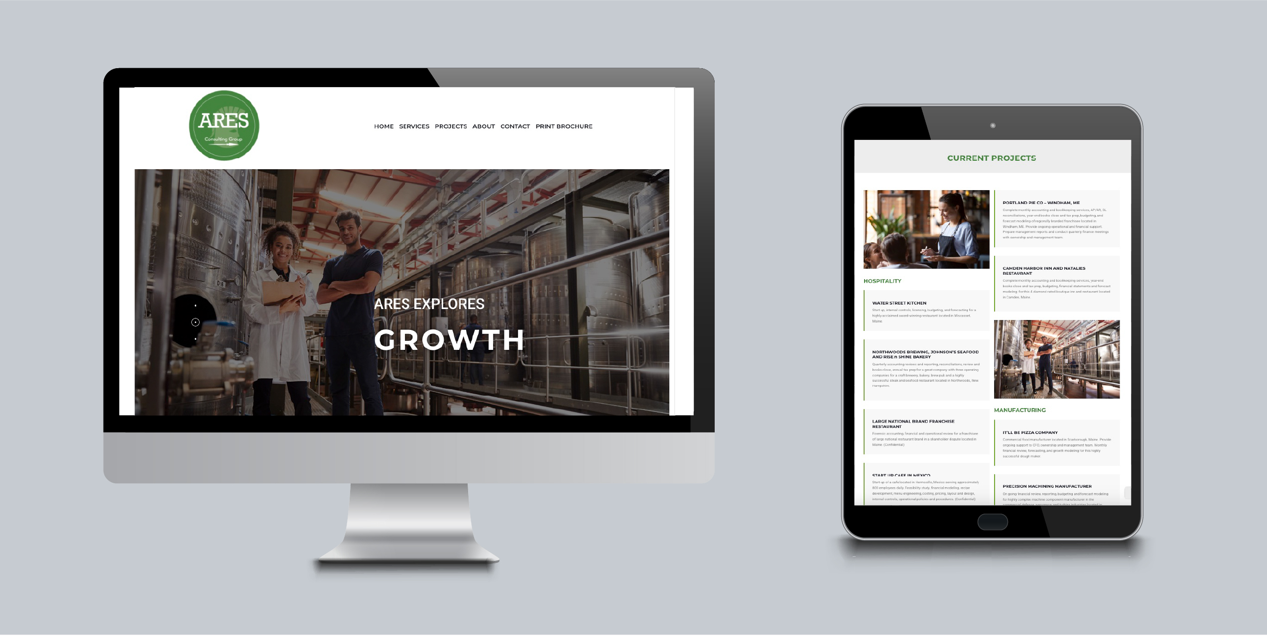 I worked with the owner of the company to design his website and a printable brochure that clients can download and print from the website. I created a clean, easy to navigate website for Ares, a new consulting group.